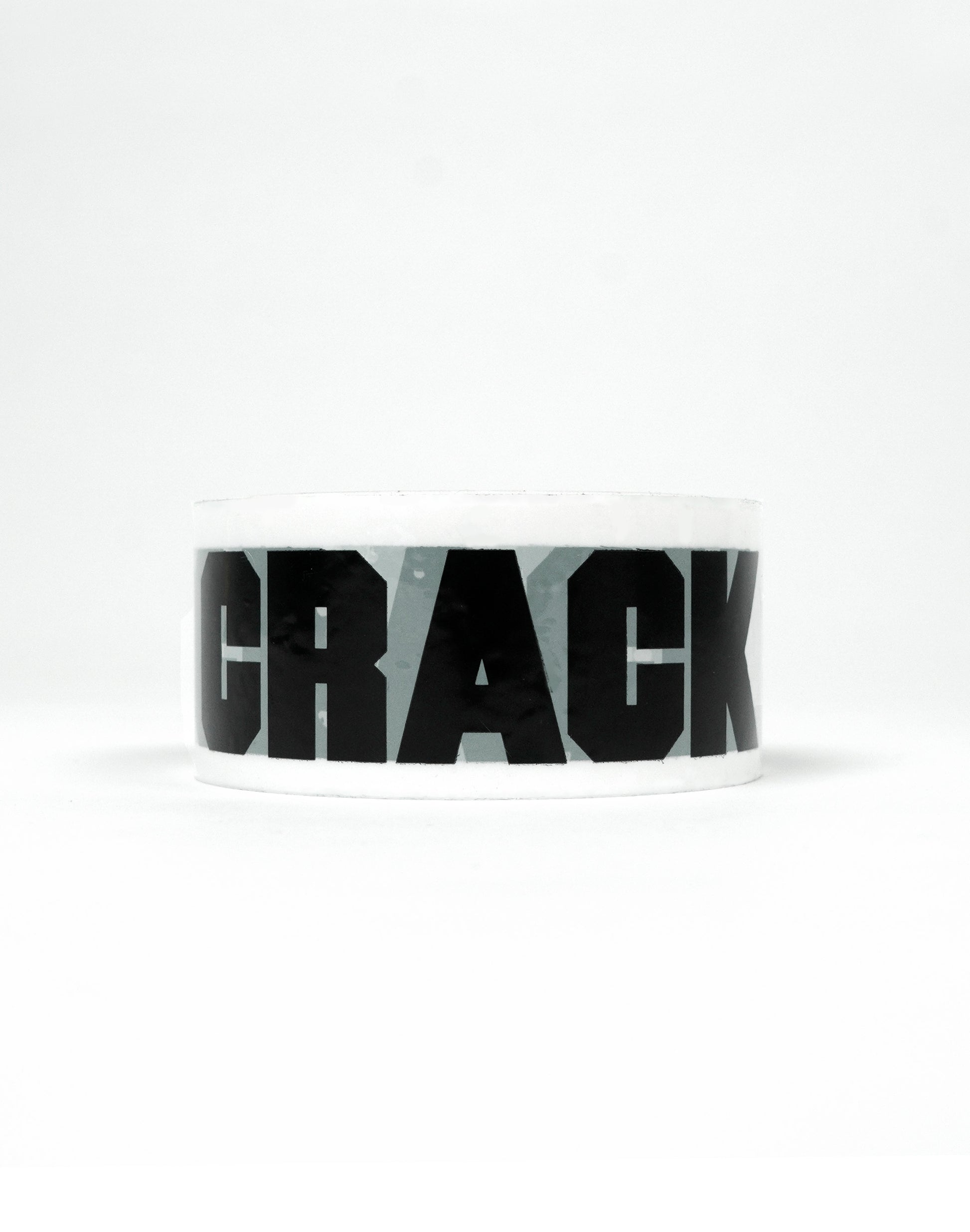 White acrylic 48mm x 66mm. Features the Crack logo in black.