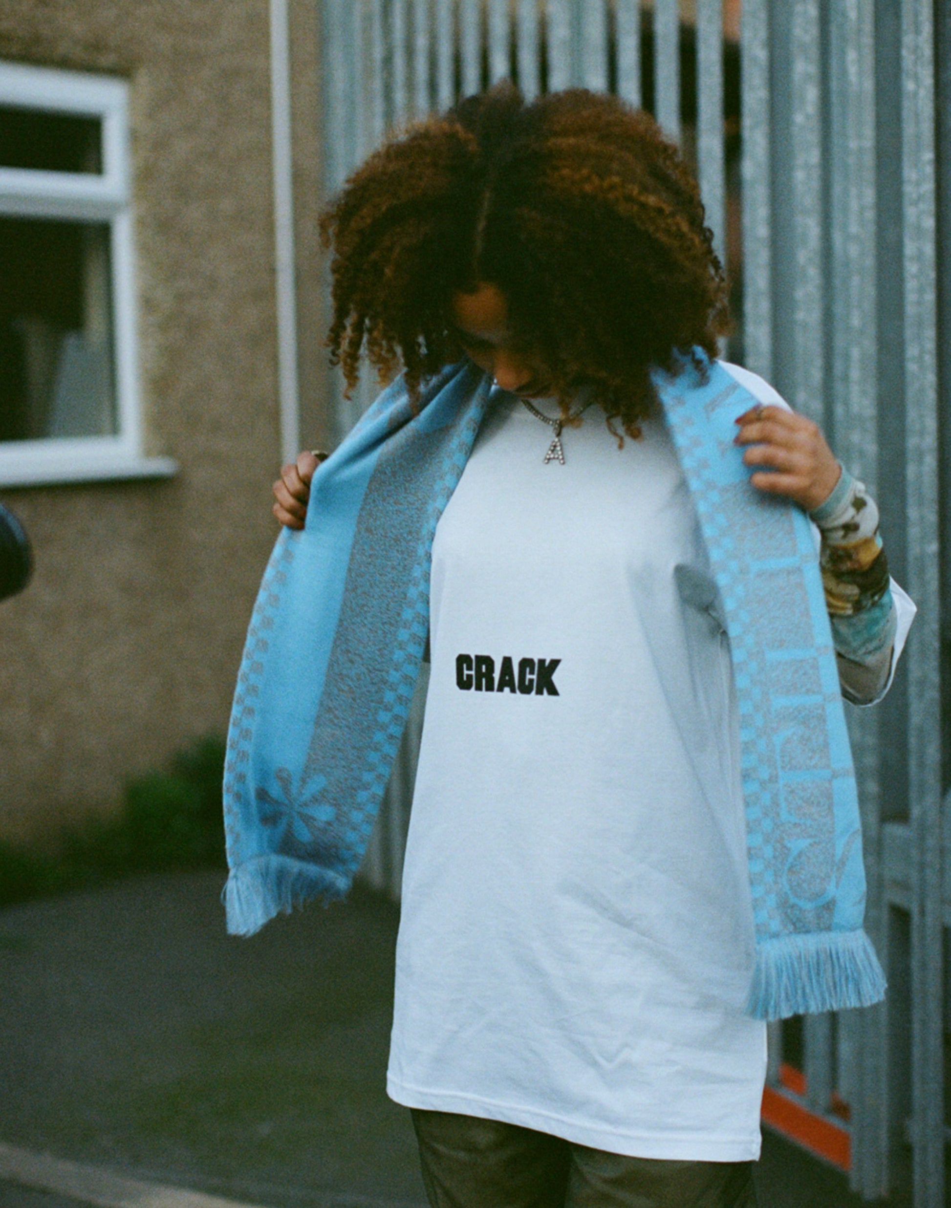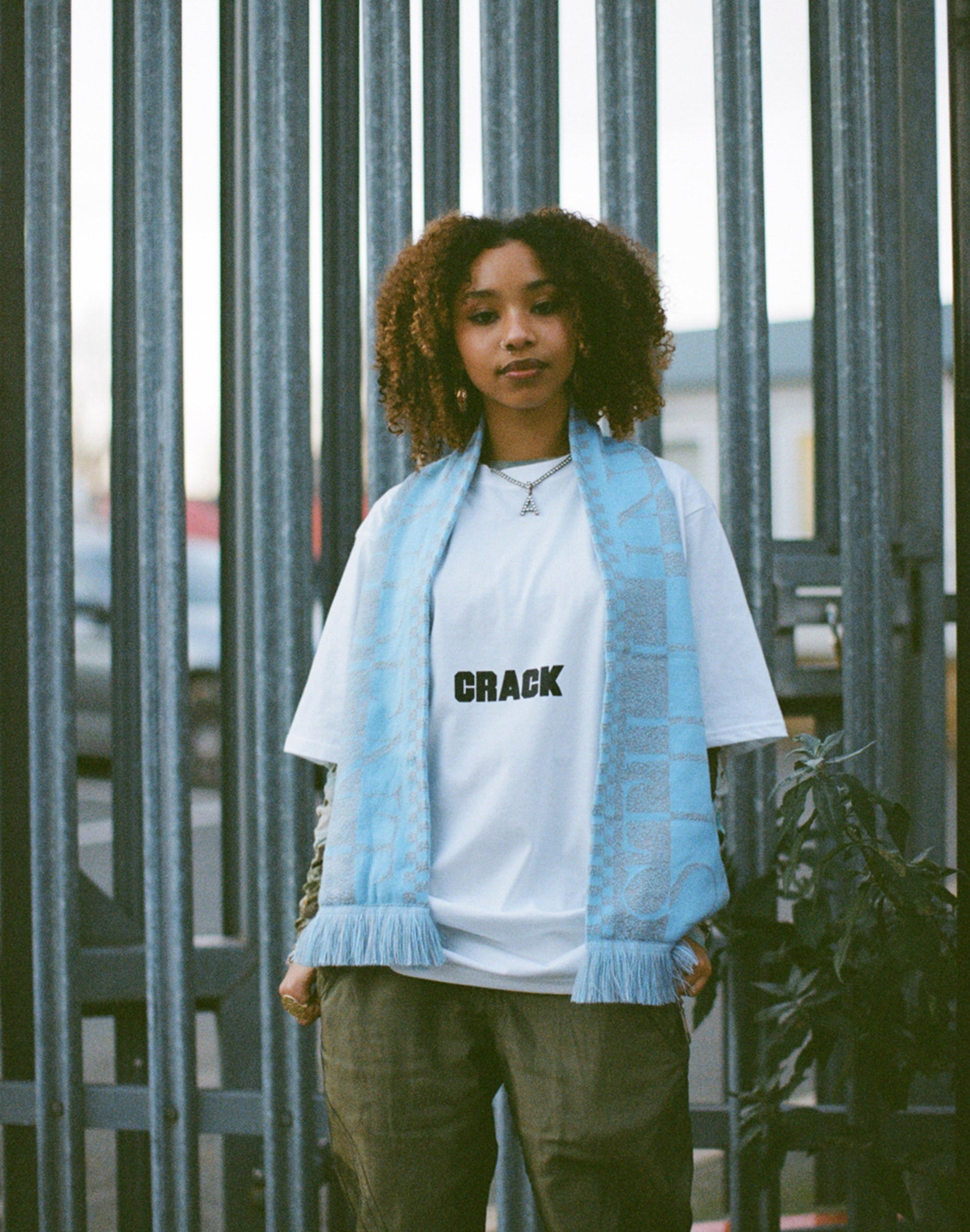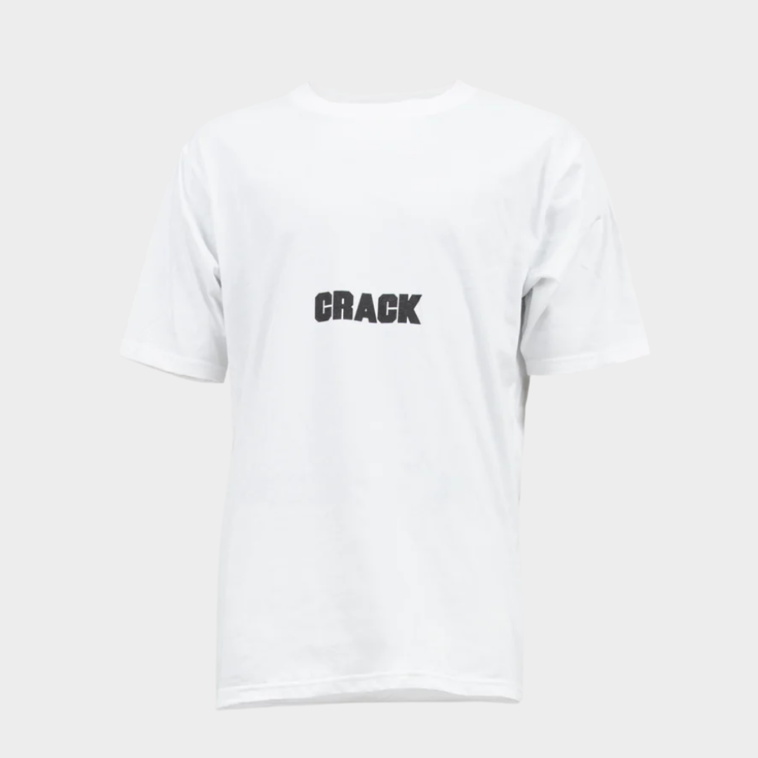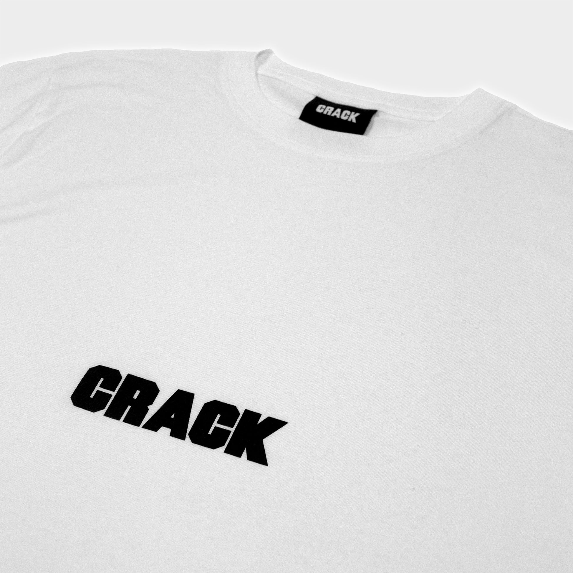 White oversized tee with classic black Crack logo print. Earth-positive heavy jersey T-Shirt.